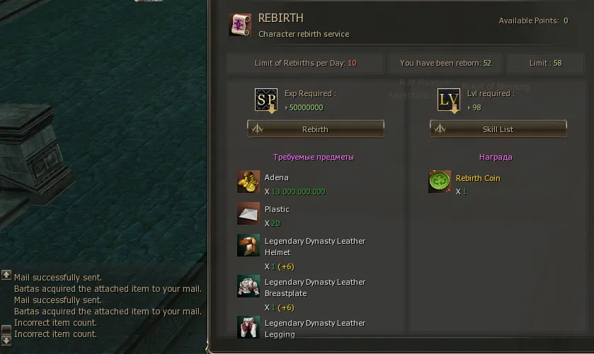 I got in my inventory full set +6, what else do i need. It says incorrect item count when i click rebirth