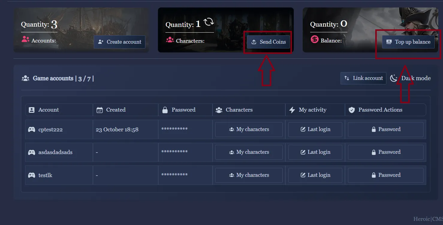 - On the main page of your personal cabinet, click the “Send Coins” button.