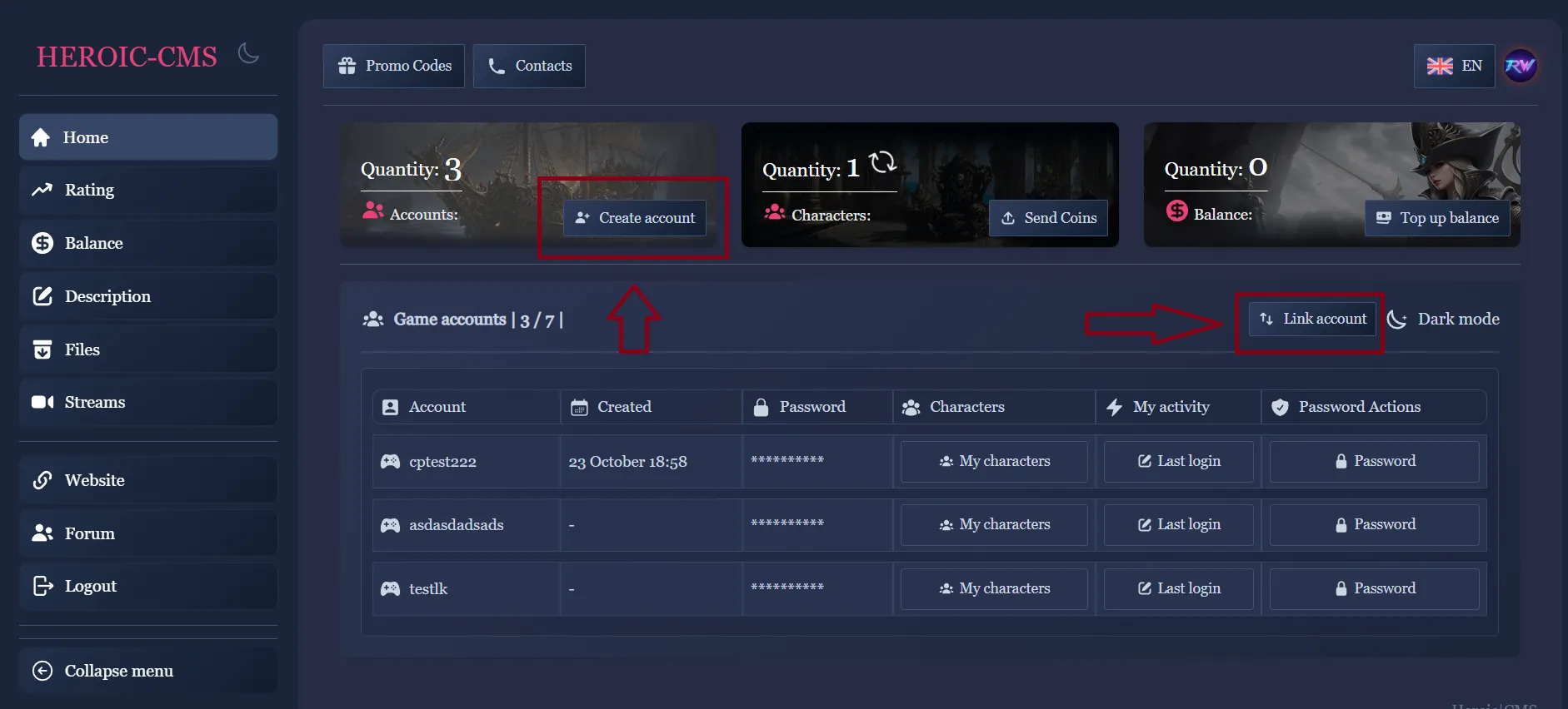 - Puedes vincular varios inicios de sesión del juego a tu cuenta del panel personal.