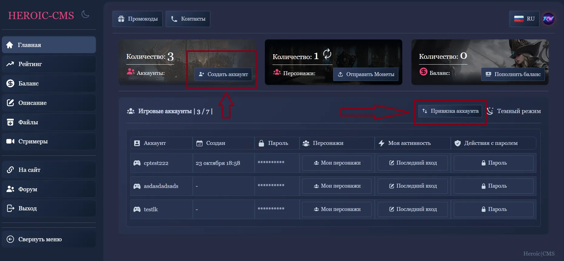 Чтобы создать новый аккаунт, зарегистрируйтесь в личном кабинете используя вашу почту. При регистрации автоматически будет создан и игровой аккаунт.